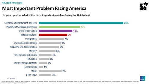 This week’s Ipsos’ Core Political shows that Americans remain divided about the main problem facing the nation, with crime and corruption concerning more Americans than at the beginning of the year. Over half of Americans report disapproval of Joe Biden’s presidential performance.