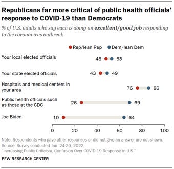 Nearly two years after the coronavirus outbreak took hold in the United States, Americans are increasingly critical of the response to COVID-19 from elected officeholders and public health officials. Amid debates over how to address the surge in cases driven by the omicron variant, confusion is now the most common reaction to shifts in public health guidance.
