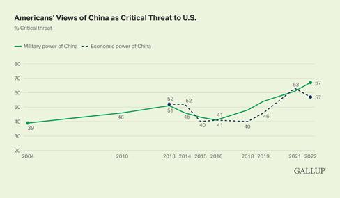 Americans generally regard terrorism, the development of nuclear weapons by unfriendly countries, and China's military power as the most critical threats to U.S. vital interests.