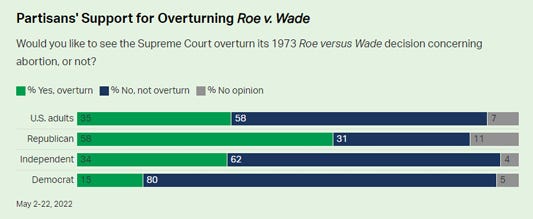 Steady 58% of Americans Do Not Want Roe v. Wade Overturned Megan Brenan, Gallup Americans remain largely opposed to overturning Roe v. Wade, as a steady 58% majority believe that the landmark 1973 Supreme Court ruling that recognized abortion as a constitutional right should stand, while 35% want it to be reversed. Partisans' opinions are sharply polarized on the issue.