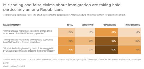 A majority of Americans see an ‘invasion’ at the southern border, NPR poll finds Joel Rose, NPR News More than half of Americans say there’s an “invasion” at the southern border, according to a new NPR/Ipsos poll, part of a broader decline in support for immigrants overall. The poll also found that large numbers of Americans hold a variety of misconceptions about immigrants.