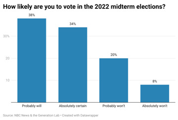 34% of college sophomores say they will vote this November Mark Murray & Alexandra Marquez, NBC News If that holds for all students, it would surpass the 2014 collegiate turnout — and get close to the 2018 election.