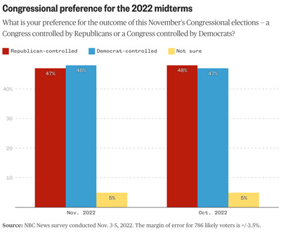 NBC News poll: Voters most blame social media, cable news and Trump for political violence Bridget Bowman, NBC News More voters also said extreme rhetoric contributed to the attack on Speaker Nancy Pelosi’s husband compared to past instances. Economic discontent fuels GOP hopes as midterms draw to a close Gary Langer, ABC News Economic discontent and President Biden's unpopularity continue to fuel Republican prospects in the closing days of the 2022 midterm election campaign, with the share of Americans saying they've gotten worse off financially doubling since Biden took office, according to the latest ABC News/Washington Post poll.