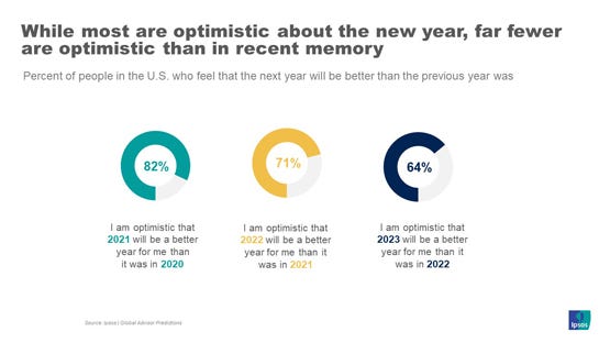 What does the public expect out of 2023? Clifford Young & Sarah Feldman, Ipsos At this reflective and forward-looking time of year, we are examining how attitudes shifted last year and how the public is feeling about entering the new year.