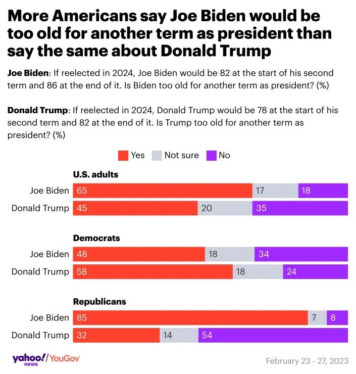 68% of voters say Biden is 'too old for another term' — and more Democrats agree than disagree Andrew Romano, Yahoo News Nearly 7 in 10 registered voters (68%) now say President Biden is “too old for another term,” according to a new Yahoo News/YouGov poll — and more Democrats agree (48%) than disagree (34%) with that assessment.