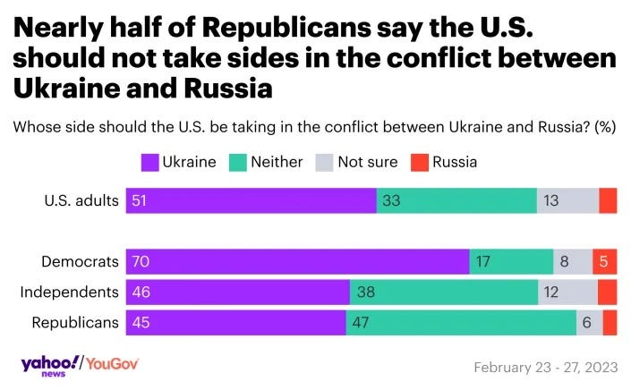 Most Trump voters say U.S. has given 'too much' aid to Ukraine Andrew Romano, Yahoo News Most Donald Trump voters now say the United States has given “too much” military aid to Ukraine (51%) and that such aid should “decrease” going forward (54%), according to a new Yahoo News/YouGov poll. These findings suggest that the broad, bipartisan consensus that has so far defined the U.S. response to the war may be eroding ahead of next year’s presidential election.