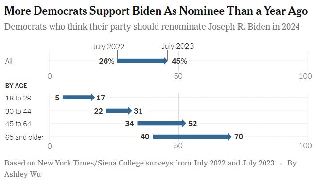 Biden Shores Up Democratic Support, but Faces Tight Race Against Trump Reid J. Epstein, Ruth Igielnik & Camille Baker, New York Times A New York Times/Siena College poll found that President Biden is on stronger footing than he was a year ago — but he is neck-and-neck in a possible rematch against Donald Trump.