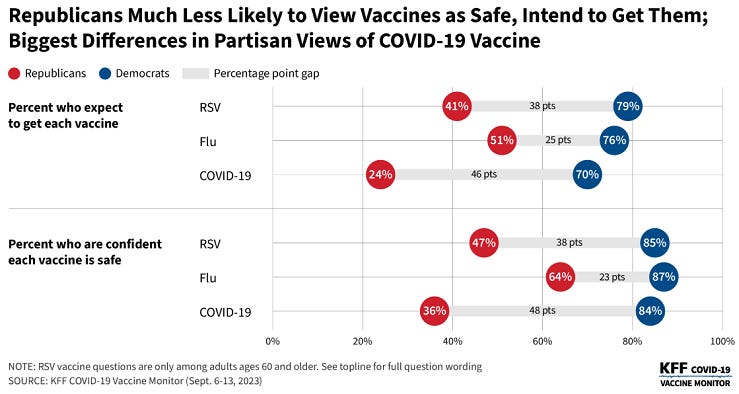 Nearly Half of Adults Expect to Get the New COVID-19 Vaccine, But Most Parents Don’t Expect to Get It for Their Children KFF The share of the public who intend to get the new COVID-19 vaccine is higher than the share who have received previous booster shots, but not as high as initial vaccine uptake back in 2020. Almost four in ten (37%) people who previously received a COVID-19 vaccine say that they probably or definitely won’t get the new shot. Reflecting patterns from earlier vaccine rollouts during the pandemic, the groups most likely to say they definitely or probably will get the new vaccine include people at least 65 years old (64%) and Democrats (70%).