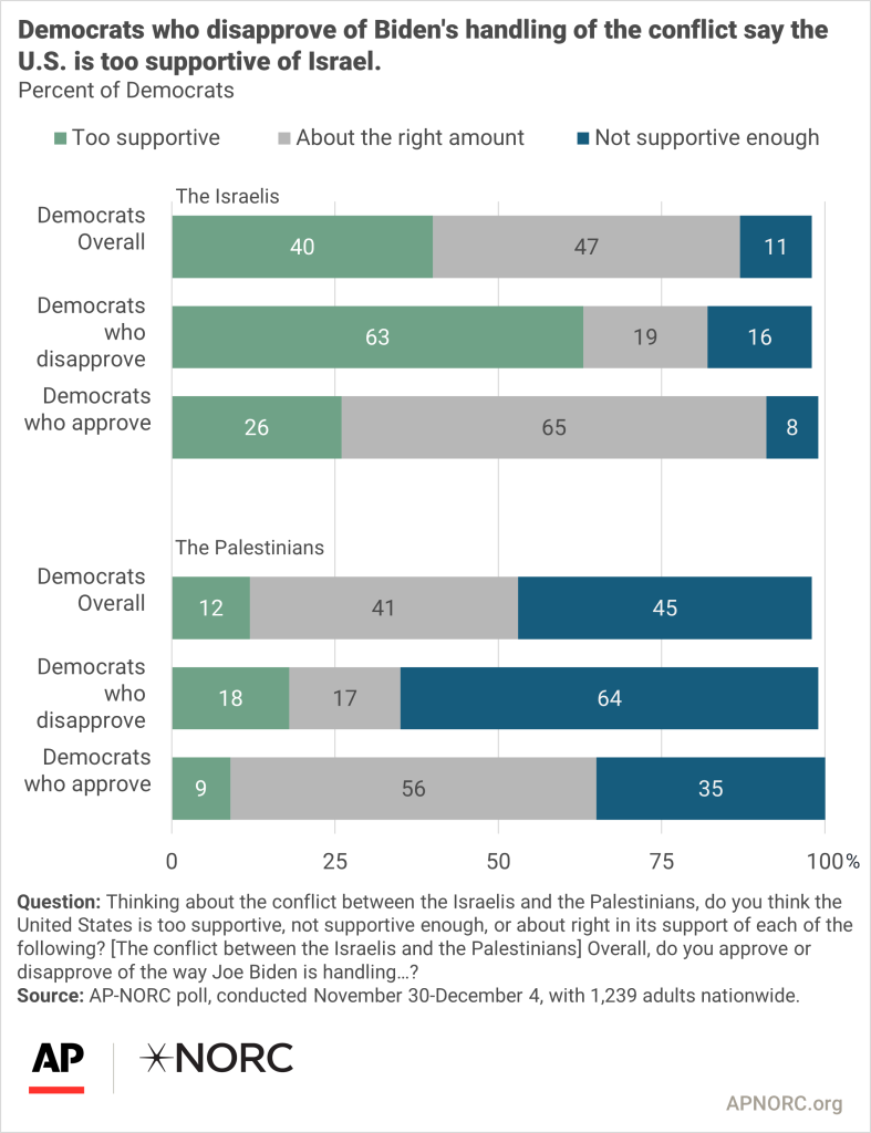 Hostage recovery tops public’s priorities for Israel-Hamas conflict AP-NORC Center for Public Affairs Research About half the public thinks the U.S. should prioritize negotiating a permanent ceasefire and provide humanitarian aid to Palestinians in Gaza. Fewer think military aid to Israel is a high priority.