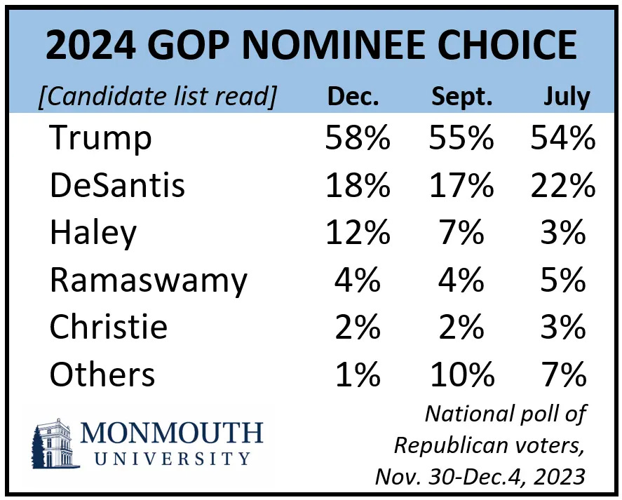 Trump Voters Want a Clear Primary Field Monmouth University Polling Institute Donald Trump continues to hold majority backing among the national Republican electorate in his bid to return to the White House. In fact, the latest Monmouth University Poll finds that most supporters of the former president would have preferred a primary where no one opposed him for the GOP nomination.
