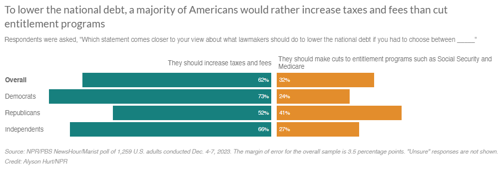Poll: Where Republican candidates align with most Americans — and where they don't Domenico Montanaro, NPR News Republicans on the campaign trail are pushing several ideas. Some are in step with the majority of Americans while others are not, the latest NPR/PBS NewsHour/Marist poll finds. The survey tested policy prescriptions on some of the most hot-button political issues facing the country, from abortion rights and gender identity to immigration, foreign aid, trade and what to do about the national debt.