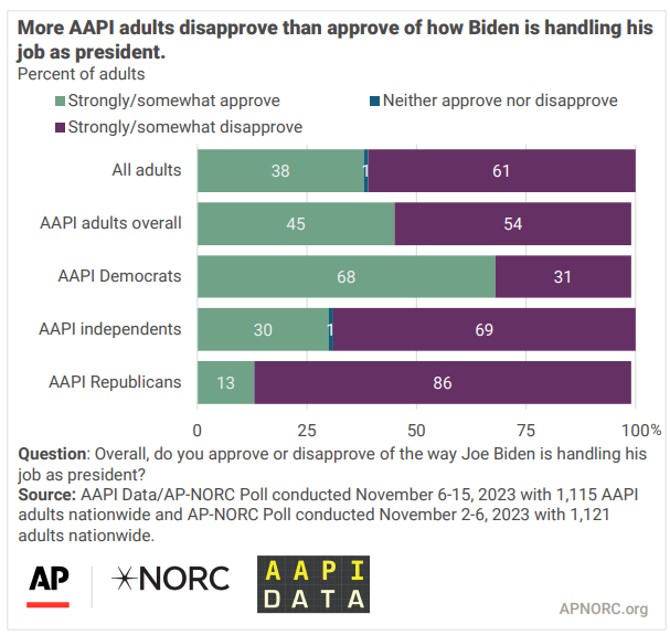 AAPI community is pessimistic about the state of politics, but their outlook is comparatively less dour than the general public’s view. AP-NORC Center for Public Affairs Research Most within the AAPI community lack trust in government institutions and have little hope for the Republican and Democratic Parties’ futures. Just 1 in 10 AAPI adults believe democracy is functioning well, though another 47% say it is functioning somewhat well.