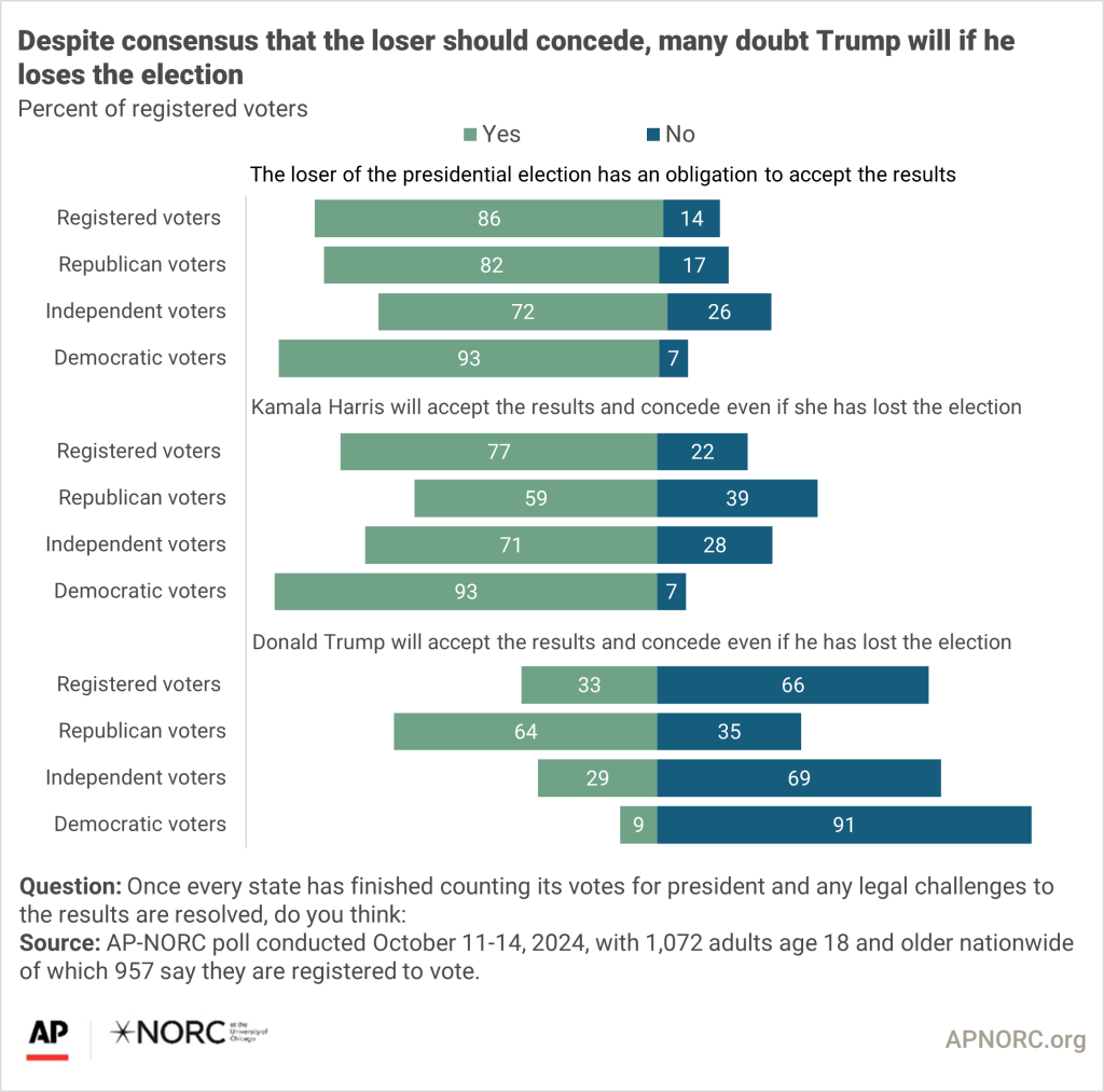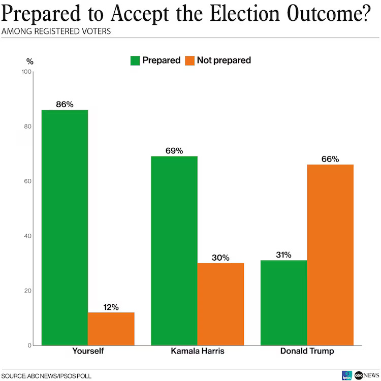 Most voters ready to accept election results but doubt Trump will Allison De Jong, ABC News Two-thirds believe Trump is not prepared to accept the outcome as legitimate.