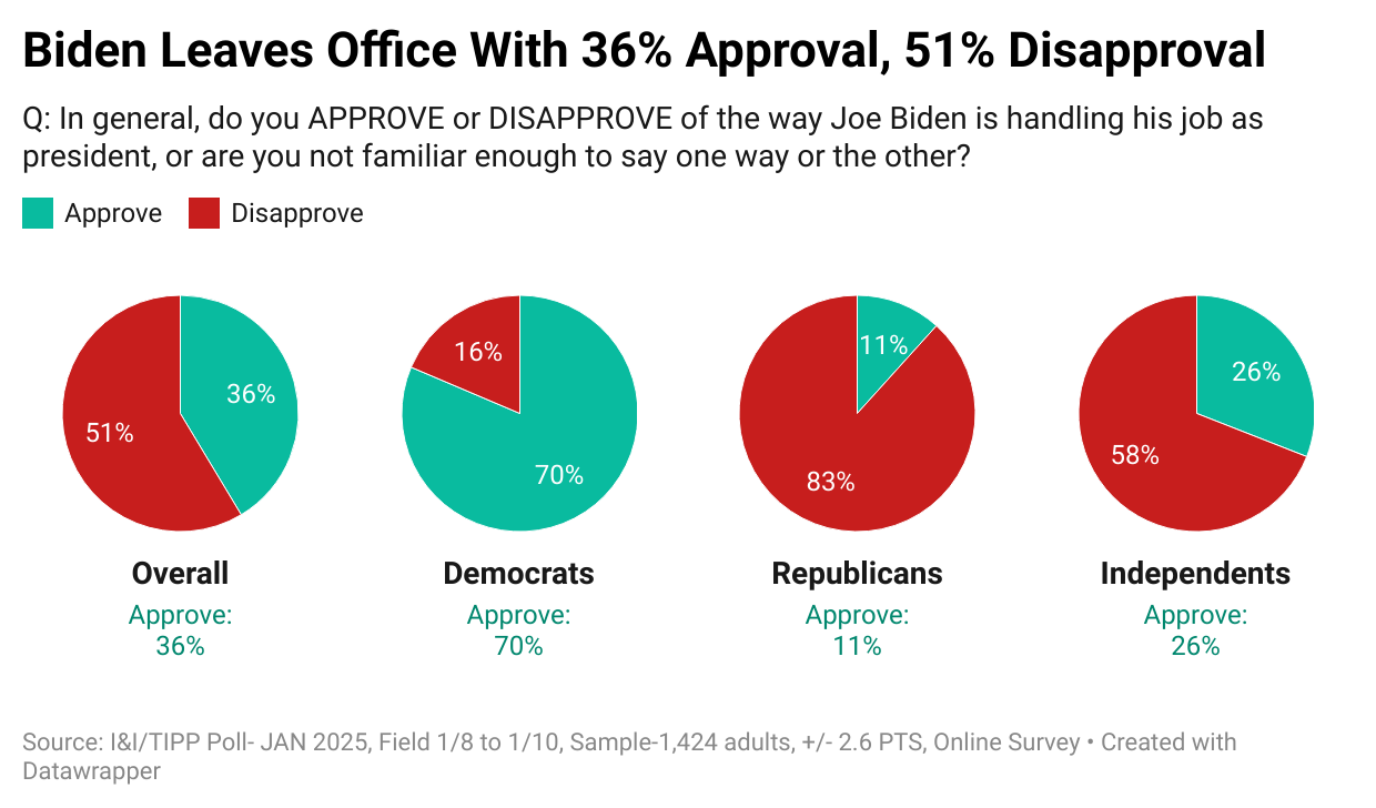 Biden's Disaster — Most Voters Give Him Failing Marks For Leadership, Key Policies: I&I/TIPP Poll Terry Jones, tippinsights Biden Earns a D on Leadership Across Key Issues as He Leaves Office.