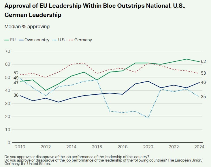 For Americans, Faith in Private Is Strong, While Religion in Public Deeply Divides Ari Pinkus, American Communities Project As Christians, Jews, Muslims, Hindus, and Buddhists celebrate the ageless rituals of Easter, Passover, Ramadan, Holi, and Vesak this sacred season, new research shows a cleaving between how Americans regard religion in their private lives versus the public sphere. Maryland: Gov. Moore job approval above 50% but continues to slide Bryan P. Sears, Maryland Matters A poll released Wednesday by Annapolis-based Gonzales Research & Media showed 55% of those surveyed said they approve Gov. Wes Moore’s job performance, compared to 36% who disapproved. President Donald Trump remains consistently unpopular with Maryland voters, but he’s not the most disliked person in the new administration. That title falls to billionaire turned federal government ax-man Elon Musk. South Carolina: Winthrop Poll Center for Public Opinion & Policy Research, Winthrop University Just over a month into Donald Trump’s second presidency, 45% of South Carolinians approve of the way the president is handling his job, while 40% disapprove. Nancy Mace is the most well-known of the potential 2026 gubernatorial candidates, with 52% of South Carolinians being either very or somewhat familiar with her. Alan Wilson is the next most well-known, with 39% saying they are either very or somewhat familiar with him. New Jersey: Voters Divided Over Energy Production Fairleigh Dickinson University According to the latest results from the FDU Poll, in cooperation with the Fuel Merchants Association of New Jersey, voters are about evenly split between preferring more natural gas plants and more nuclear energy, with other options like importing electricity from other states proving less popular. Los Angeles: Fewer than 20% of residents give Mayor Bass high marks for fire response Julia Wick, Los Angeles Times [via Yahoo] Weeks after fires ravaged the region, many Angelenos were dissatisfied with Mayor Karen Bass’ leadership, a new poll has found. A little over 40% of registered voters in the city said they thought Bass did a poor or very poor job in responding to the fires, while just 19% characterized her response as excellent or good, according to a new survey from the UC Berkeley Institute of Governmental Studies, co-sponsored by The Times. EU Member States Show Strong Support for Brussels Benedict Vigers, Gallup Gallup’s latest data show that in 2024, no EU member state preferred their own or Washington’s leadership over Brussels, and only one preferred Berlin’s leadership.