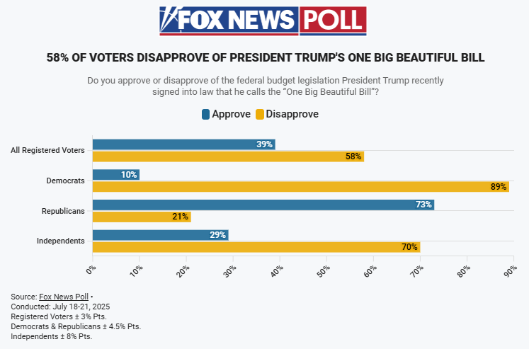 Fox News Poll: Trump facing headwinds at six-month mark Dana Blanton, Fox News Six months into Donald Trump’s second presidency, the political tea leaves are muddled. Voters disapprove of the job he is doing, dislike his new budget law, and doubt his dealings with Iran are making the U.S. safer. At the same time, ratings of the economy show signs of improvement, feelings on the direction of the country are inching upward, and the president’s job approval ratings are holding steady, according to a new Fox News national survey.