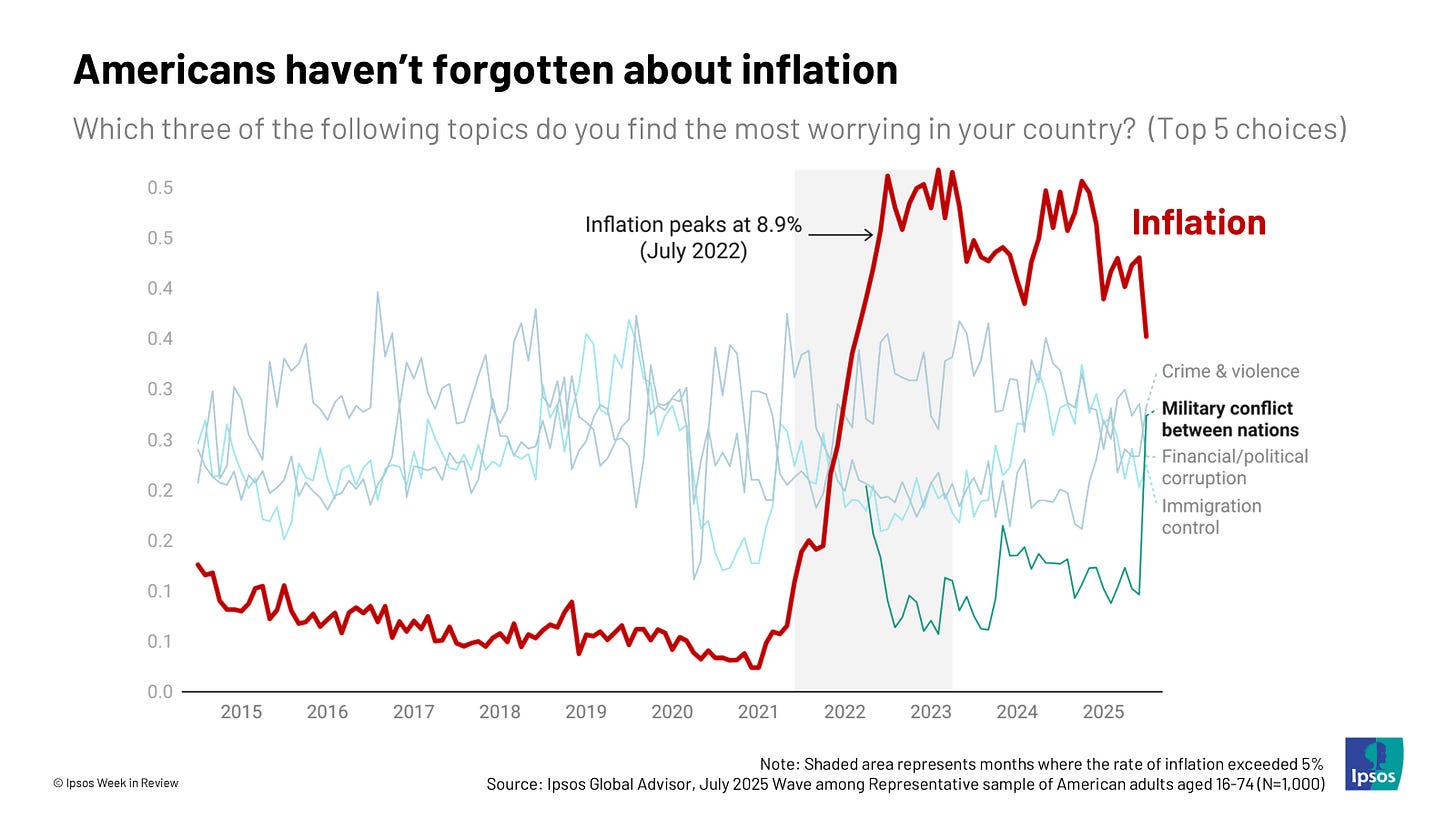 Americans never forgot about inflation Clifford Young and Bernard Mendez, Ipsos A higher-than-expected Producer Price Index report has left economists worried that companies will soon be passing on tariff-related costs to consumers and that the inflationary effects of tariffs may be at our doorstep. How big of a blip tariffs will end up being on prices remains to be seen. But for Americans, inflation is a familiar story, one that never really left their minds, even several summers after 2022’s historic wave of inflation hit its crest.