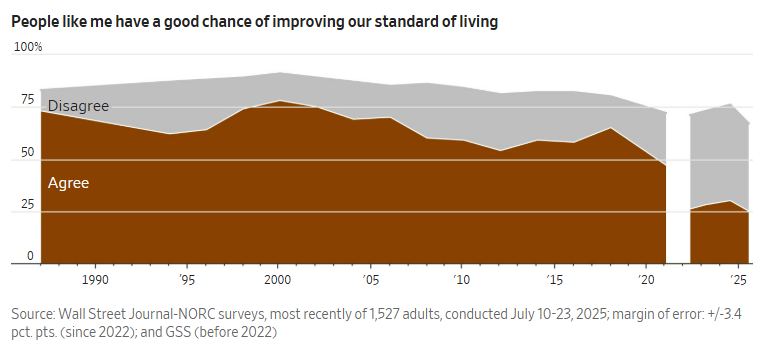 Americans Lose Faith That Hard Work Leads to Economic Gains, WSJ-NORC Poll Finds Lindsay Ellis and Aaron Zitner, Wall Street Journal [unlocked] Trump is contending with a disconnect between the nation’s sour outlook and traditional measures showing a robust economy