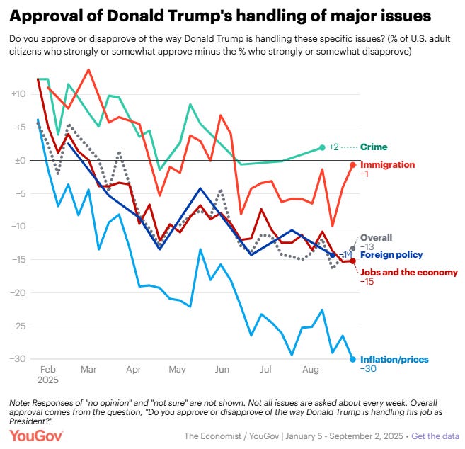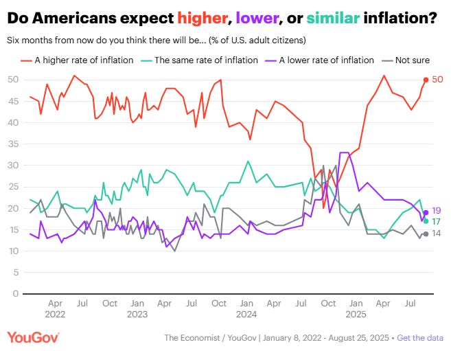 Trump’s approval rating slips post-jobs report Eli Yokley & Cameron Easley, Morning Consult Just 45% of voters approve of Trump’s performance following the release of a second successive disappointing jobs report, down 2 percentage points over the past two weeks and tying a record low since he took office in January. Half of voters disapprove of Trump’s handling of the economy, up 3 points over the past week, while just 42% approve, down 2 points over that time frame. Short-Term Inflation Expectations Tick Up, Job Finding Expectations Reach Series Low Federal Reserve Bank of New York The Federal Reserve Bank of New York’s Center for Microeconomic Data released the August 2025 Survey of Consumer Expectations, which shows that households’ inflation expectations ticked up at the short-term horizon and remained unchanged at the medium- and longer-term horizons. Unemployment and job loss expectations worsened. Job finding expectations declined to a series low. U.S. Depression Rate Remains Historically High Dan Witters, Gallup The percentage of U.S. adults who report currently having or being treated for depression has exceeded 18% in both 2024 and 2025, up about eight percentage points since the initial measurement in 2015. The current rate of 18.3% measured so far in 2025 projects to an estimated 47.8 million Americans suffering from depression. Most of the increase has occurred since the onset of the COVID-19 pandemic in 2020.