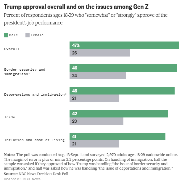 Gen Z's gender divide reaches beyond politics and into its views on marriage, children and success Marc Trussler and Stephanie Perry, NBC News Gen Z men who backed Trump in 2024 rated having children at the top of a list of choices of how to define personal success. Gen Z women who backed Harris rated it second to last.