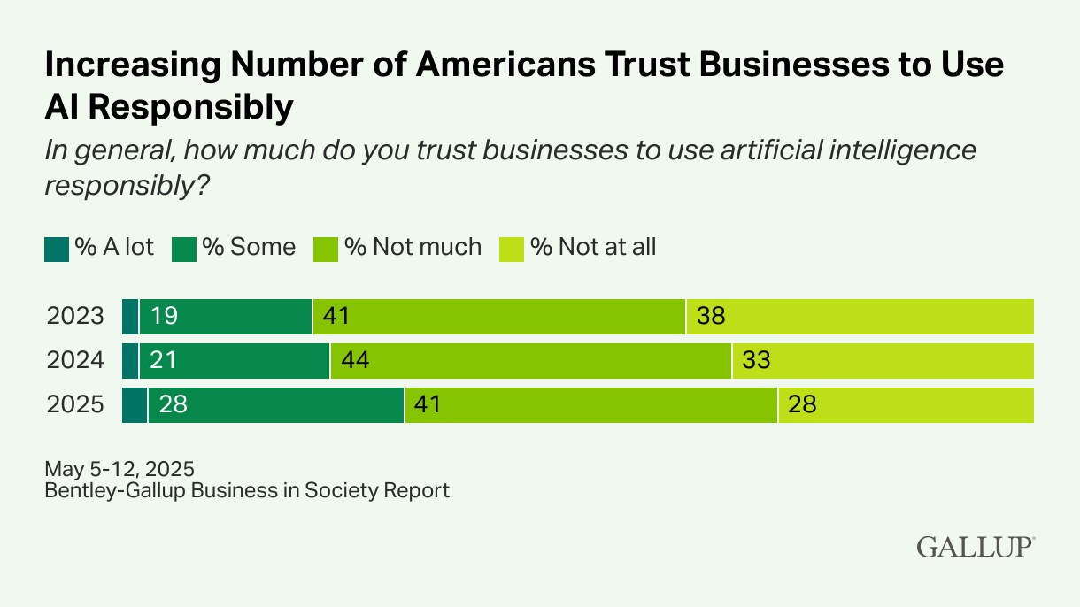 Trust in Businesses' Use of AI Improves Slightly Stephanie Marken, Gallup