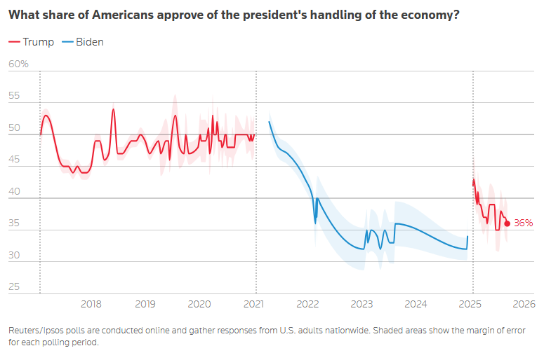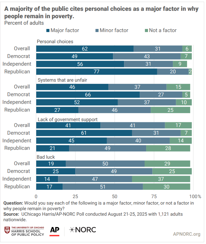 Most US adults think individual choices keep people in poverty, a new AP-NORC/Harris poll finds Claire Rush and Linley Sanders, Associated Press Trump approval rating at 42% - weak on economy, Reuters/Ipsos poll shows Jason Lange, Reuters