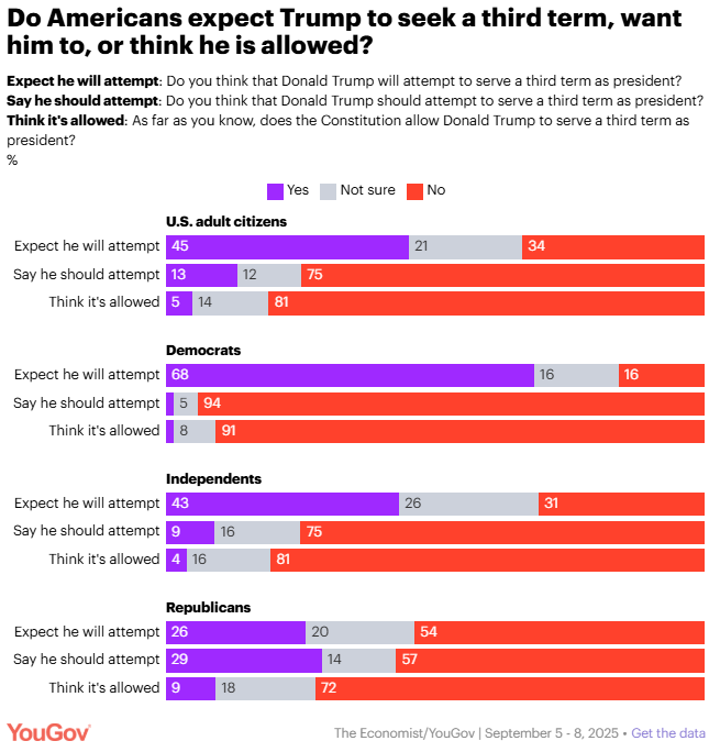 Economic concerns, AI's effects, Trump's age, and the Epstein investigations: September 5-8, 2025, Economist/YouGov Poll Taylor Orth and David Montgomery, YouGov This week’s Economist/YouGov poll covers… • Rising concern about the economy • Whether Americans say Donald Trump or Joe Biden is more responsible for the current economy • Whether more people expect AI to help or hurt economic output • How many people think Trump is too old to be president • Whether Trump's marks for handling Epstein investigations have improved