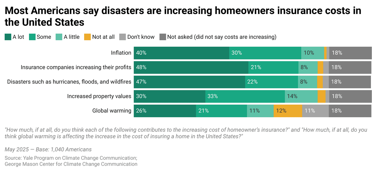 About half of Americans understand that global warming is increasing homeowners insurance costs Yale Program on Climate Change Communication and the George Mason University Center for Climate Change Communication