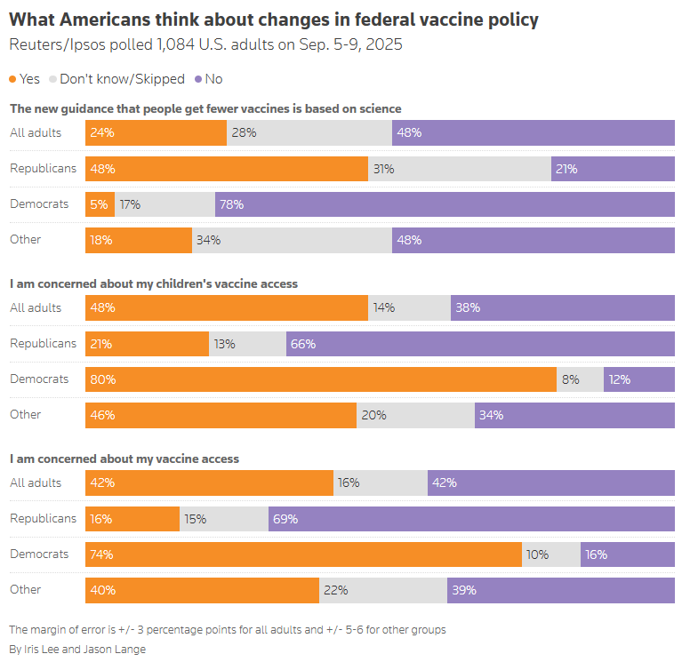 Just 1 in 4 Americans believe Trump administration vaccine shifts are based on science, Reuters/Ipsos poll finds Jason Lange and Michael Erman, Reuters Only one in four Americans believe that recent recommendations for fewer vaccines from President Donald Trump's administration were based on scientific evidence and facts, according to a new Reuters/Ipsos poll.