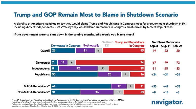 Republicans on the Hook for Government Shutdown Erica Seifert & Ian Smith, Navigator Research • Shutdown awareness remains low and lags well behind other recent news stories. • Americans are more likely to blame Trump and Republicans in the event of a shutdown. • Independents and Republicans have increased likelihood of blaming both sides.