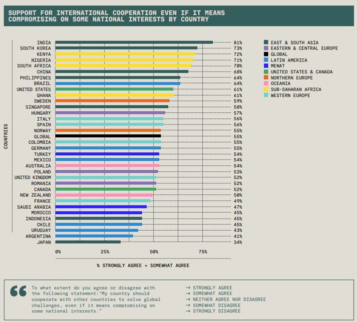 Widespread Support for International Cooperation in Landmark 34-Country Survey Rockefeller Foundation The Rockefeller Foundation released findings of a new global poll that shows considerable, but fragile, support for international cooperation. At a moment of massive global disruption, including dramatic cuts to humanitarian and development work—for example, the Organization for Economic Cooperation and Development (OECD) has predicted official development assistance (ODA) to fall by an additional 9%-17% this year — The Rockefeller Foundation’s new survey captures how people view global cooperation and key international institutions.