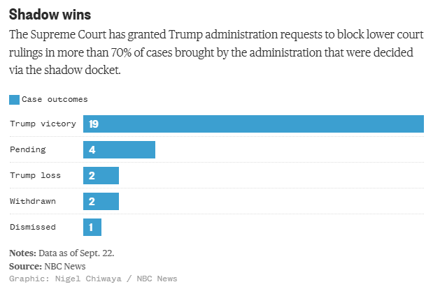 Politics is Bad For Our Health Mark Schulman, Markschulman’s Substack A lot of powerful people just don’t realize how unpopular Trump is G. Elliott Morris, Strength In Numbers Republicans see Trump as unusually resistant to bribery Philip Bump Kirk’s memorial was an emblem of the Trump era — and a sign of what’s ahead Karen Tumulty, Washington Post The Firing of Educators Over Kirk Comments Follows a Familiar Playbook Stephanie Saul, New York Times [unlocked] The US veers toward Christian nationalism Zachary B. Wolf, CNN Trump’s Tax Cut Is Underwater. Can a ‘Refund Boom’ Save It? Andrew Duehren, New York Times [unlocked] Democrats Are Picking the Wrong Shutdown Fight Nate Silver, New York Times [unlocked] Why Democrats can’t match Trump’s gerrymander push Natalie Fertig, Politico White House bullish after a long string of Supreme Court victories Lawrence Hurley and Katherine Doyle, NBC News