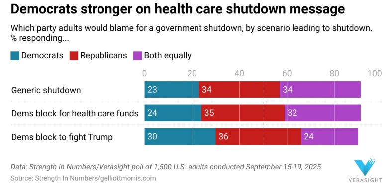 Voters say they’ll blame Republicans more for a government shutdown G. Elliott Morris, Strength In Numbers Our new Strength In Numbers/Verasight poll this week asked voters how they would react to three different hypothetical shutdown scenarios.