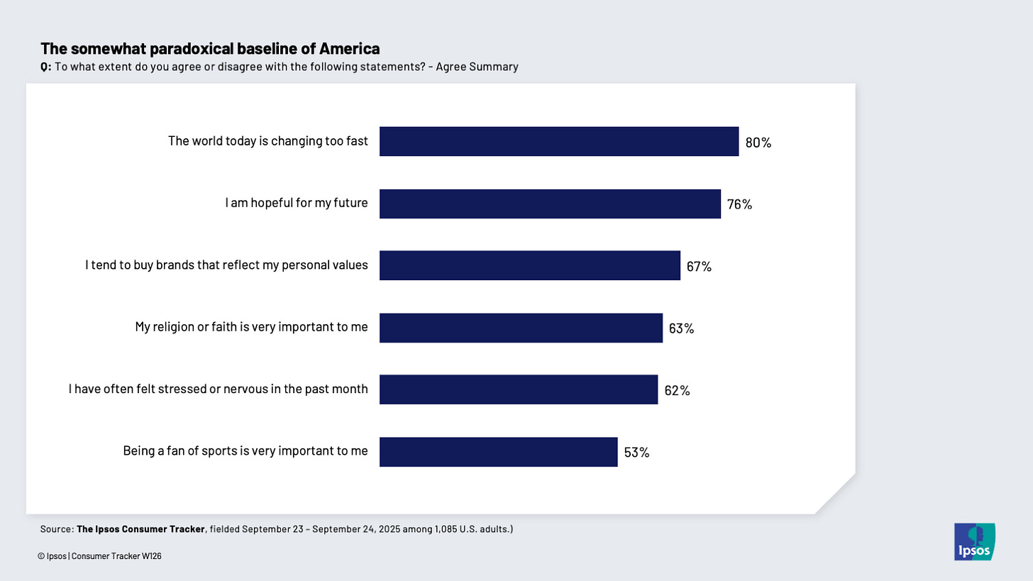 Americans are stressed but also hopeful. Here’s why both are possible. Matt Carmichael, Ipsos Eight in ten Americans say that the world is changing too fast, but 76% also say they’re hopeful for the future. Those aren’t as contradictory as they seem.