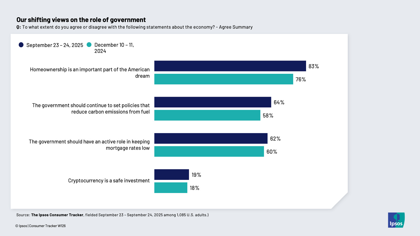 Americans’ views on the role of government are shifting Matt Carmichael, Ipsos The number of Americans who think homeownership is part of the American Dream is high and getting higher, according to the Ipsos Consumer Tracker