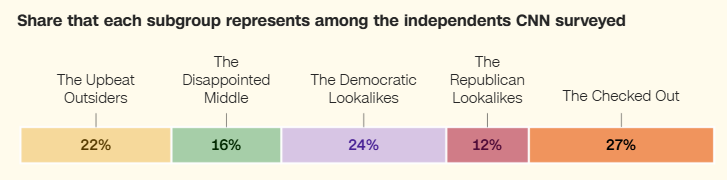 See the five types of independents that have big implications for American politics Jennifer Agiesta, Ariel Edwards-Levy, Annette Choi and Jeff Zeleny, CNN Picture an independent voter. You might be imagining someone who takes their time considering the candidates and their positions on the issues, who generally has faith in the political system, who sometimes votes for Republicans and sometimes for Democrats. But a new CNN poll taking a deeper look into who political independents are finds the notion of a classic swing voter is a thing of the past.