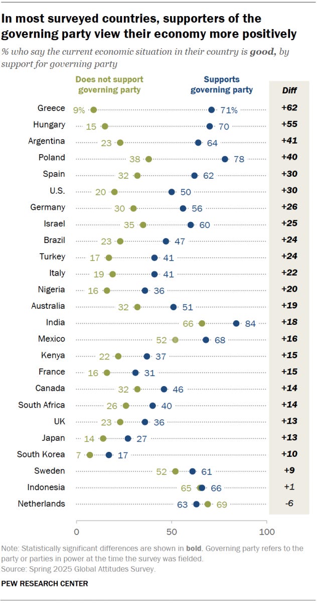 In many countries, views of the national economy are closely related to partisanship Jonathan Schulman and Manolo Corichi, Pew Research Center Around the world, views of the economy are related to several factors. Public opinion responds to economic shocks, but we also see that some people’s views change significantly following political shifts – namely, after elections.