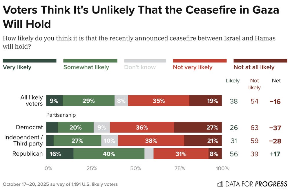 Voters Do Not Think the Ceasefire in Gaza Will Hold, Support More Aid for Palestinians Data for Progress