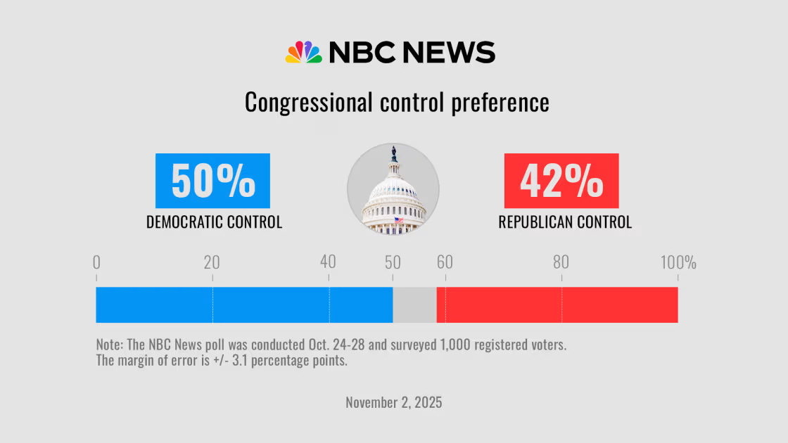 Frustration with Trump gives Democrats an opening a year before the midterms Ben Kamisar and Bridget Bowman, NBC News Democrats have an early lead in next year’s battle for control of Congress amid an ongoing government shutdown, as more voters say President Donald Trump has not lived up to their expectations on several major issues that propelled him back to the White House in 2024, according to a new national NBC News poll.