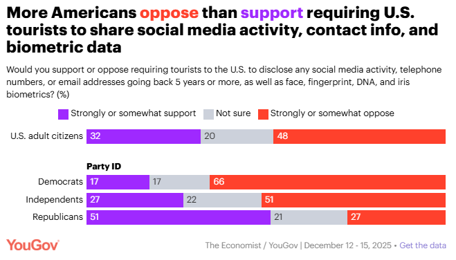 More Americans oppose than support a proposal to increase vetting procedures for U.S. tourists Taylor Orth, YouGov Somewhat more Americans prefer for legal immigration to be reduced than increased, but when it comes to people who are already in the country illegally, slightly more Americans are in favor of letting them stay than requiring them to leave. A new proposal to dramatically increase vetting procedures for tourists receives more opposition than support.
