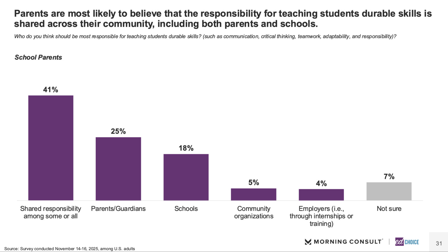 Fall Polling Finds Parents Value Durable Skills Development in Schools Colyn Ritter, EdChoice