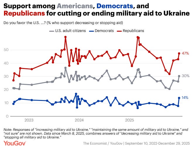 Support for military aid to Ukraine is waning again Taylor Orth, YouGov Many Americans believe neither Russia nor Ukraine is winning the war between them. Views on U.S. military aid to Ukraine are divided, though a growing share of Americans support reducing or stopping aid entirely. More disapprove than approve of Trump's handling of the conflict.