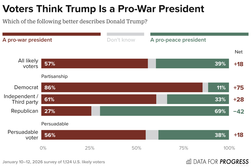 Voters Think Trump Is a Pro-War President, See Venezuela Invasion as Mostly for Oil Data for Progress