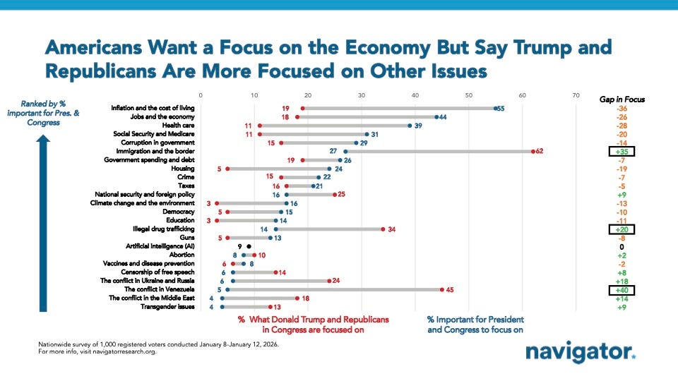 Google / Ipsos Multi-Country AI Survey 2026 Annaleise Azevedo Lohr and Alec Tyson, Ipsos Nearly 4 in 10 Americans wish they had options beyond the Republican and Democratic parties Gabriel Borelli, Pew Research Center Americans Don’t Want Greenland, They Just Want Lower Costs Maryann Cousens & Julie Alderman Boudreau, Navigator Research