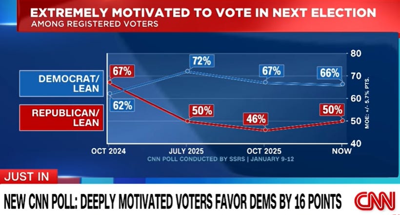 CNN poll: Democrats are deeply motivated for the midterms despite having dismal views of party leaders Jennifer Agiesta and Ariel Edwards-Levy, CNN The Democratic Party has a deeply motivated base and a clear advantage on the generic congressional ballot ahead of this fall’s midterms despite dismal impressions of its current leaders in Congress, according to a new CNN poll conducted by SSRS. Democratic registered voters are far more motivated right now than Republicans. While the party has a 5-point edge on the generic ballot, among those who say they’re deeply motivated to vote, that advantage expands to a massive 16 points.