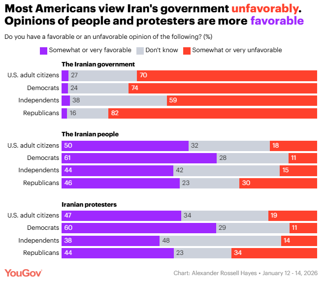 Many Americans support Iranian protesters but few want U.S. military involvement in Iran Alexander Rossell Hayes, YouGov