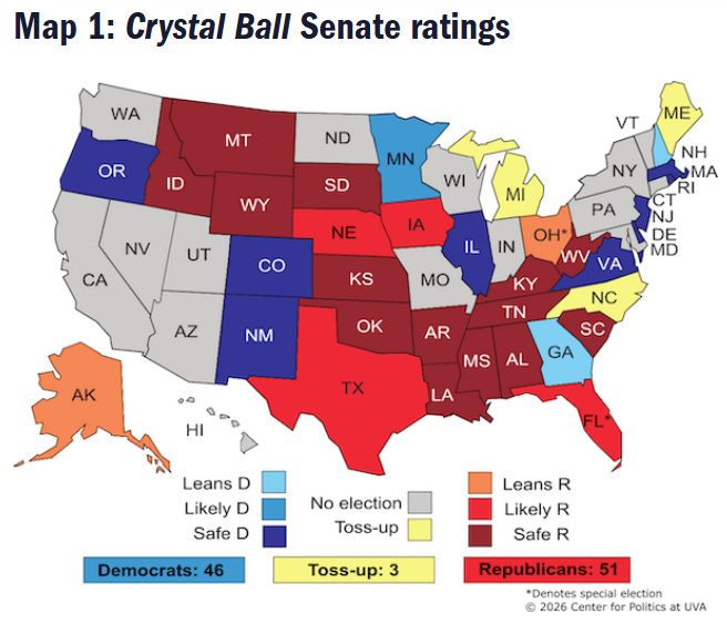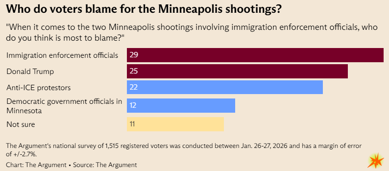 The Polls Are Clear. Americans Don’t Want This. Kristen Soltis Anderson (Echelon Insights), New York Times [unlocked] Americans Support ‘Restricting, Restraining, and Reforming’ ICE Senate Majority PAC Meet The Pocketbook Pessimists Julie Alderman Boudreau, Navigator Research Few see unlimited campaign spending as a form of free speech Mallory Newall and Lily Miller, Ipsos State of Chinese Americans Survey Committee of 100 Texas: New poll shows how Democratic primary voters are weighing electability and turnout in the Senate race Texas Public Opinion Research North Carolina: Voters want to choose their public school Carolina Journal How the Minneapolis killings look from Trump country Frank Langfitt, NPR News Trump faces fresh MAGA blowback for efforts to ‘de-escalate’ in Minnesota Natalie Allison, Isaac Arnsdorf and Hannah Knowles, Washington Post [unlocked] What MAGA Sees in the Minnesota Mirror David French, New York Times [unlocked] How to Talk About Minnesota and ICE Dan Pfeiffer, The Message Box Justice Dept. Playbook in Minnesota: Investigate Foes, Protect Allies Alan Feuer and Glenn Thrush, New York Times [unlocked] The Senate: A Couple of Rating Changes in Favor of Democrats, but Republicans Still Favored Overall Kyle Kondik, Sabato’s Crystal Ball