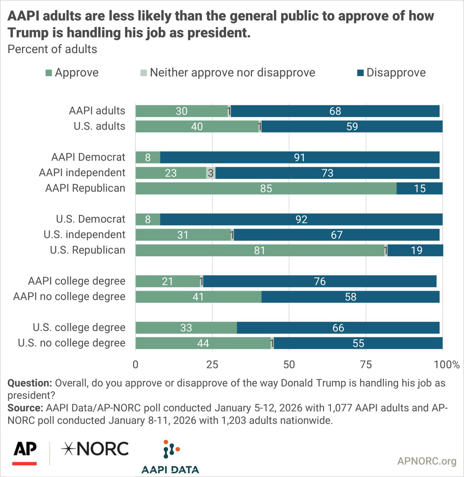 Approval of Trump’s overall job performance and his handling of several key issues is low among AAPI communities AP-NORC Center for Public Affairs Research and AAPI Data