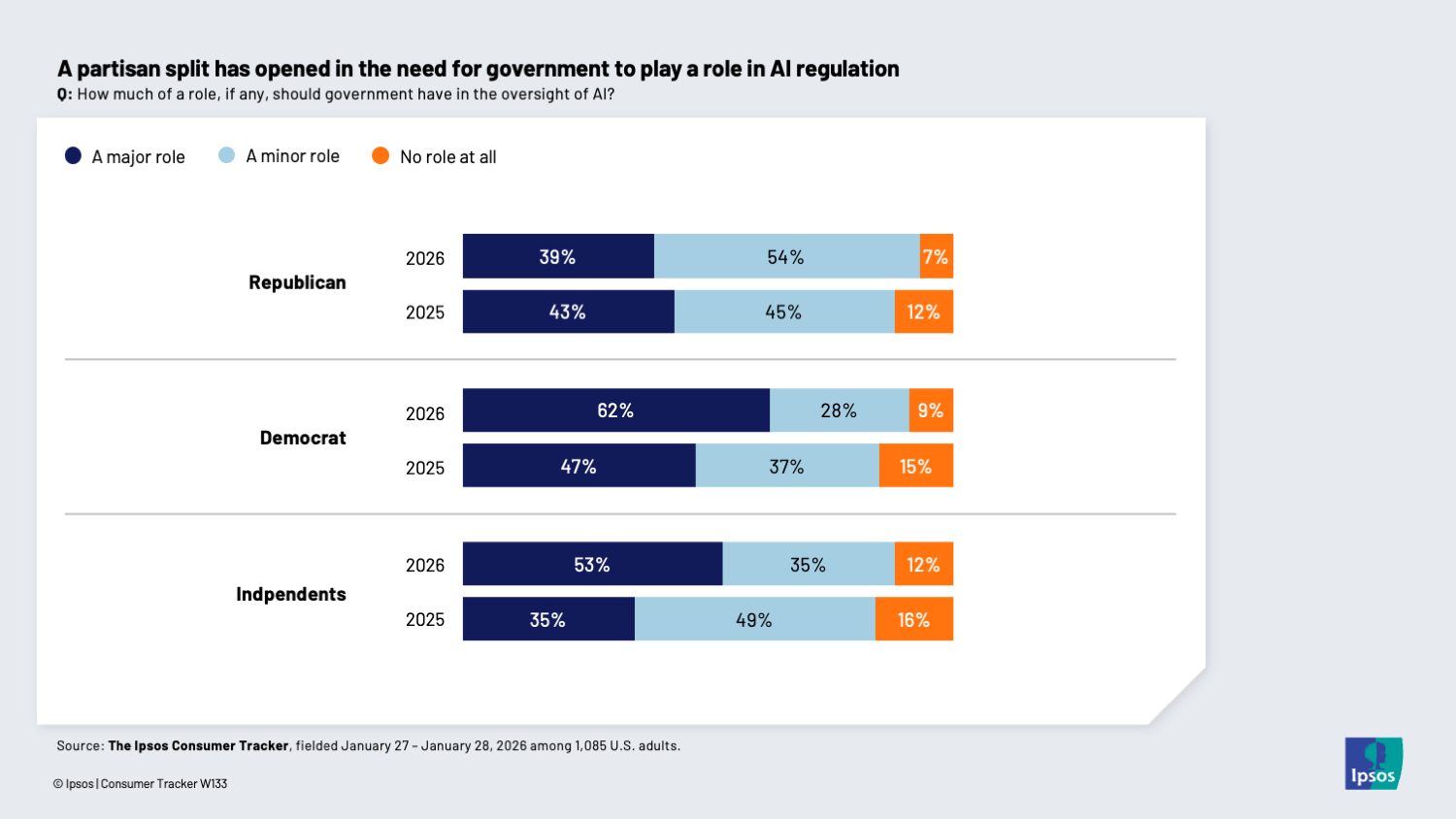 A partisan split has opened in the need for government to play a role in AI regulation Matt Carmichael, Ipsos