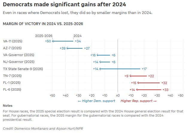 Oklahoma: Sooner Survey Pat McFerron, Cole Hargrave Snodgrass & Associates Backlash to Trump emboldens Democrats on DHS and ICE as partial shutdown looms Sahil Kapur and Julie Tsirkin, NBC News 5 glaring warning signs for Republicans in this year's midterm elections Domenico Montanaro, NPR News